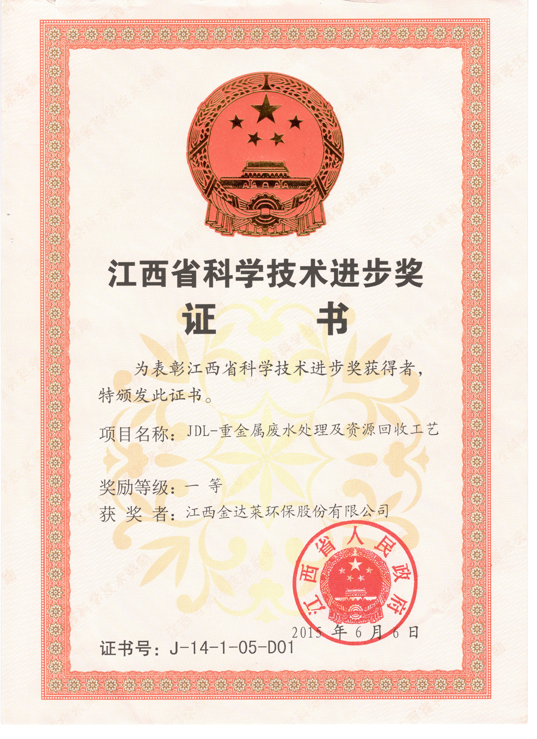 江西省科學(xué)技術(shù)進(jìn)步一等獎(jiǎng)